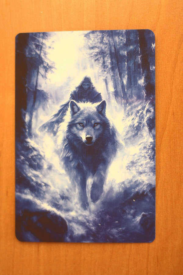 Девушка в лесу верхом на волке